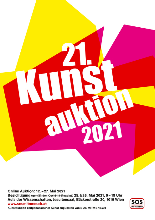 Die 21. Benefizauktion zeitgenössischer Kunst zugunsten der Menschenrechtsarbeit von SOS Mitmensch ist aufgrund der Einschränkungen durch das Corona-Virus wie im Vorjahr als eine reine Online-Auktion durchgeführt worden. Zwischen 12. und 27. Mai konnte mitgesteigert werden.